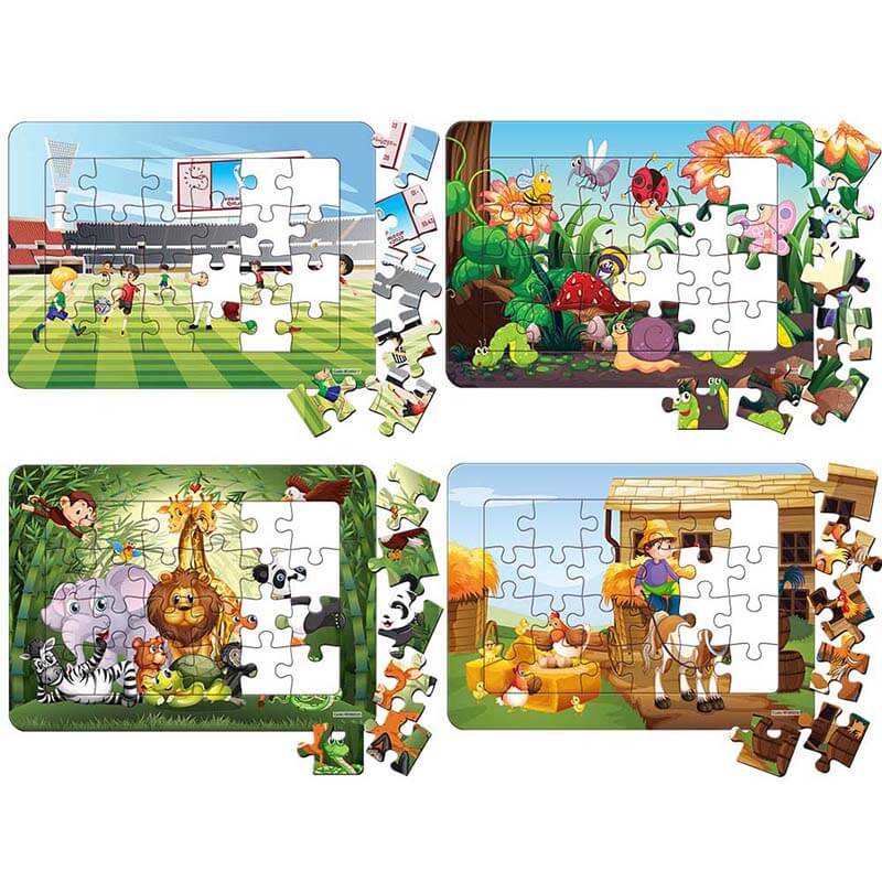 Mixed Series 1 – 4 Packs – 24 Pieces Jigsaw Puzzles Duplex Paper Board Size – 7.25”×10” for Kids Educational Brain Teaser Boards Toys